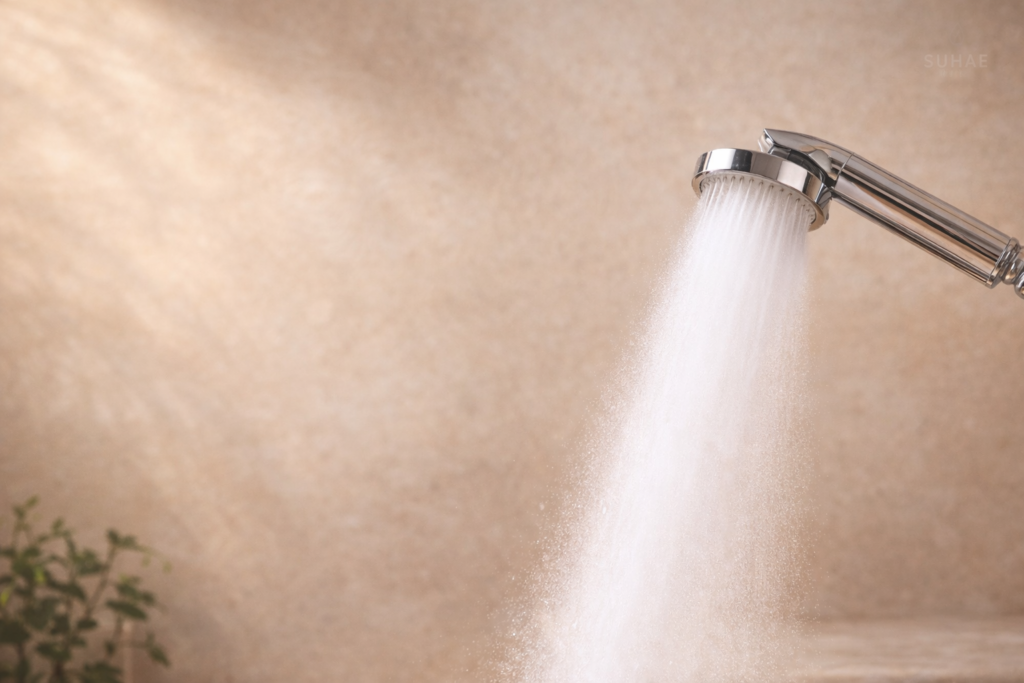 Skin is repeatedly exposed to shower water, often twice daily. Even when chlorine levels meet regulatory standards, repeated oxidative contact can influence skin comfort. By neutralising chlorine at the point of use and incorporating antibacterial safeguards, SUHAE creates a more refined shower environment.