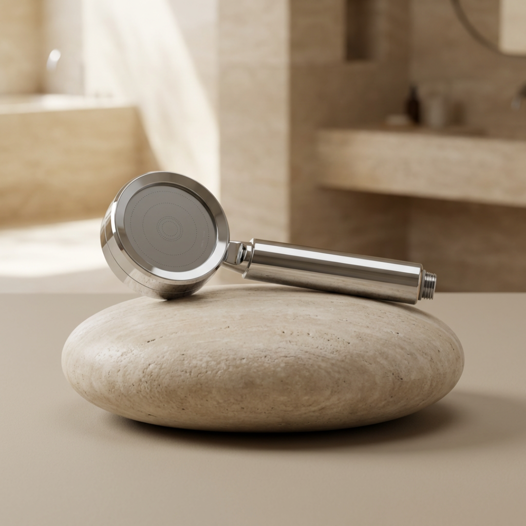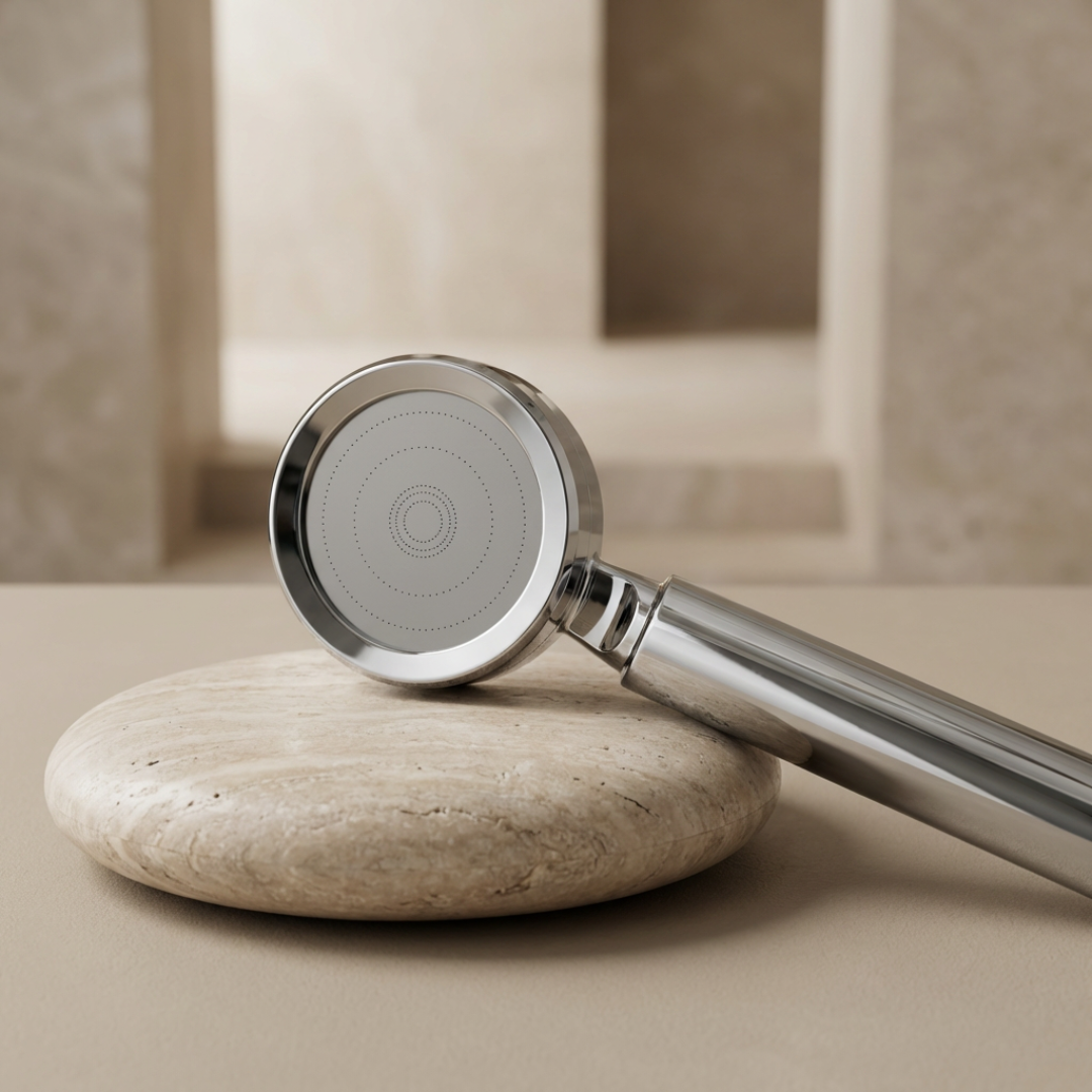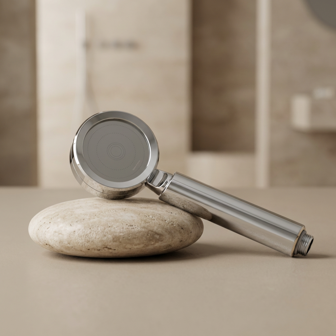 SUHAE uses Vitamin C infusion to help neutralise chlorine instantly as water flows through the system. This chemical reaction converts chlorine into less reactive compounds before the water touches your skin, making the shower feel gentler and more comfortable.