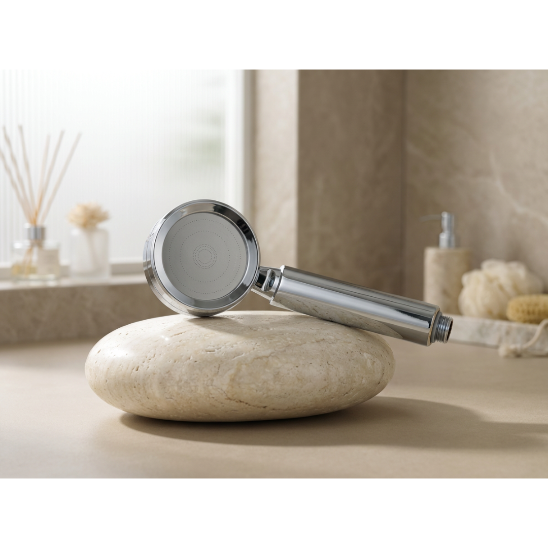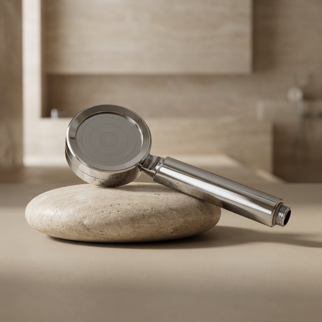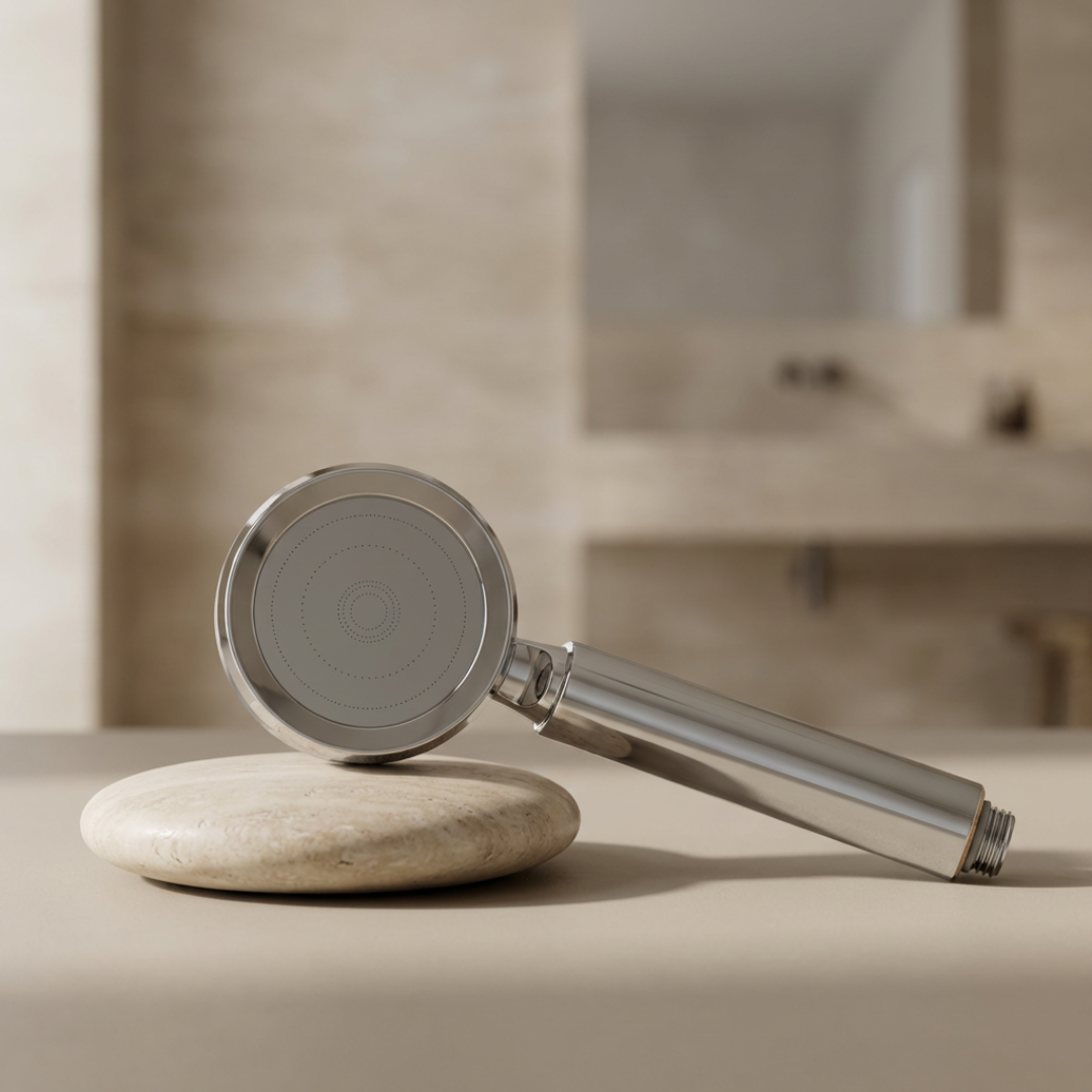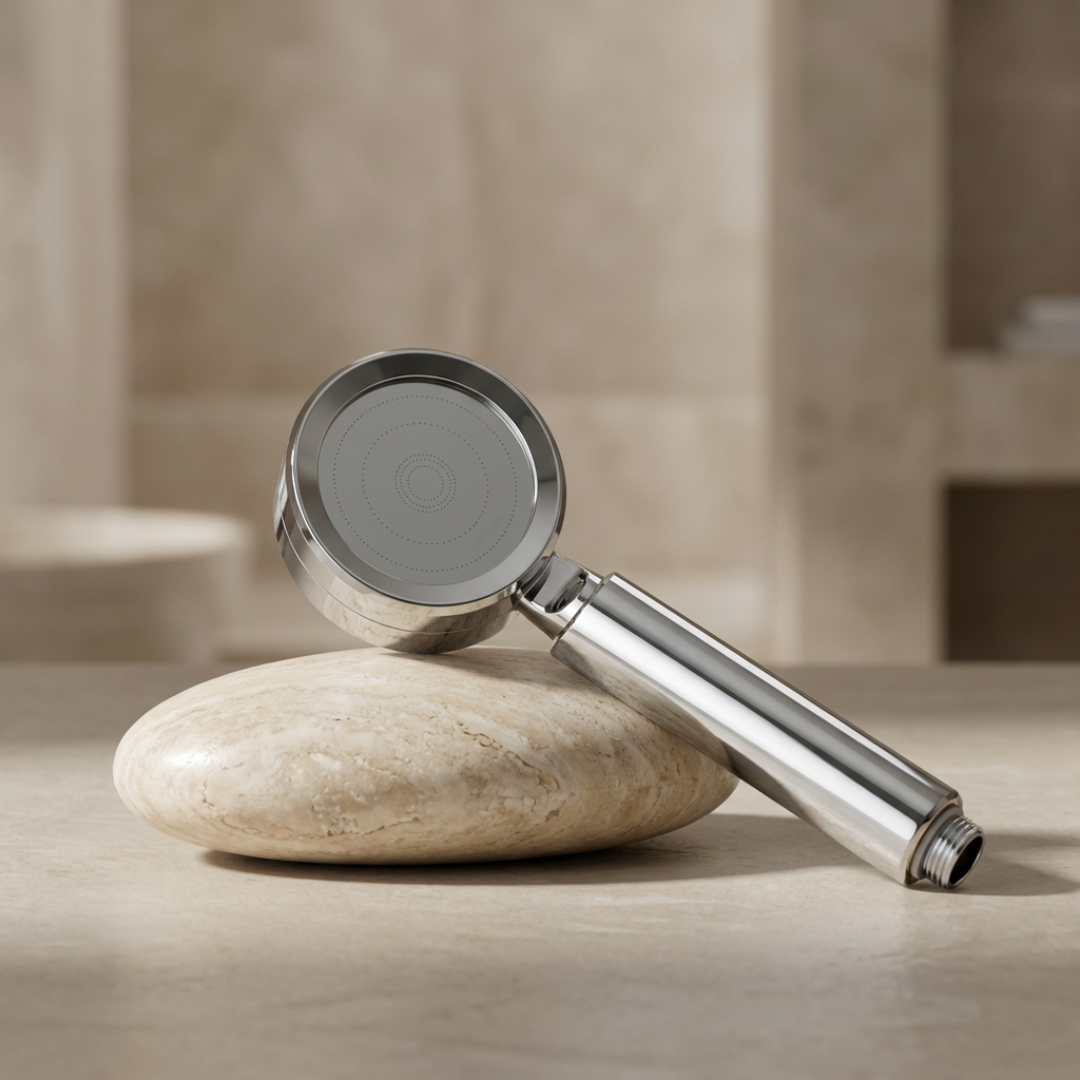 SUHAE uses Vitamin C infusion to help neutralise chlorine instantly as water flows through the system. This chemical reaction converts chlorine into less reactive compounds before the water touches your skin, making the shower feel gentler and more comfortable.