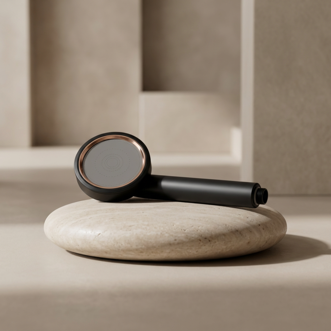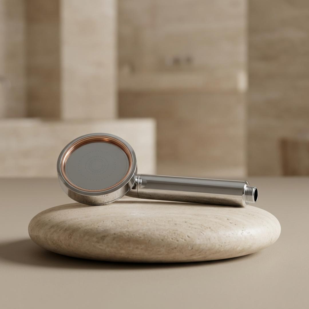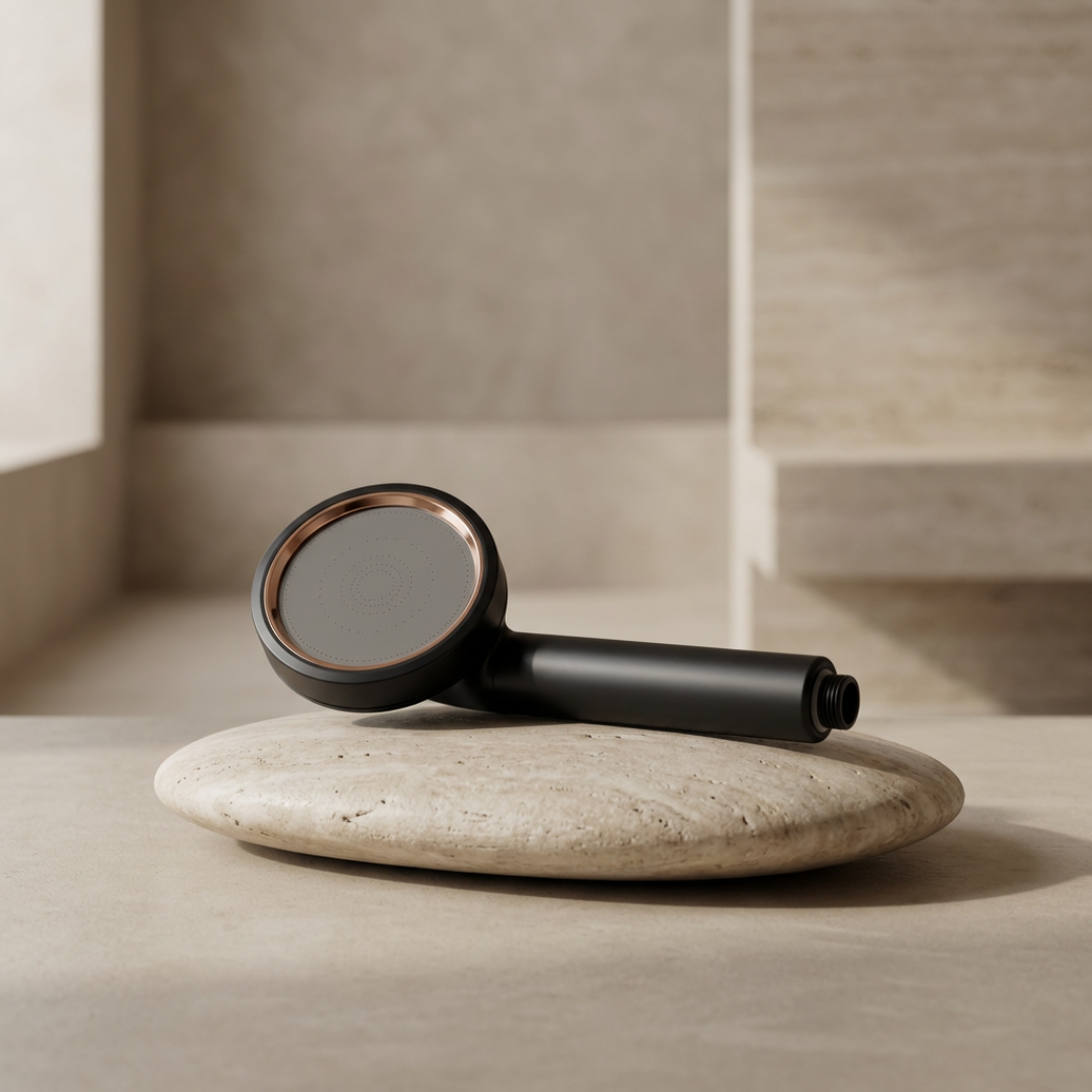 SUHAE uses Vitamin C infusion to help neutralise chlorine instantly as water flows through the system. This chemical reaction converts chlorine into less reactive compounds before the water touches your skin, making the shower feel gentler and more comfortable.