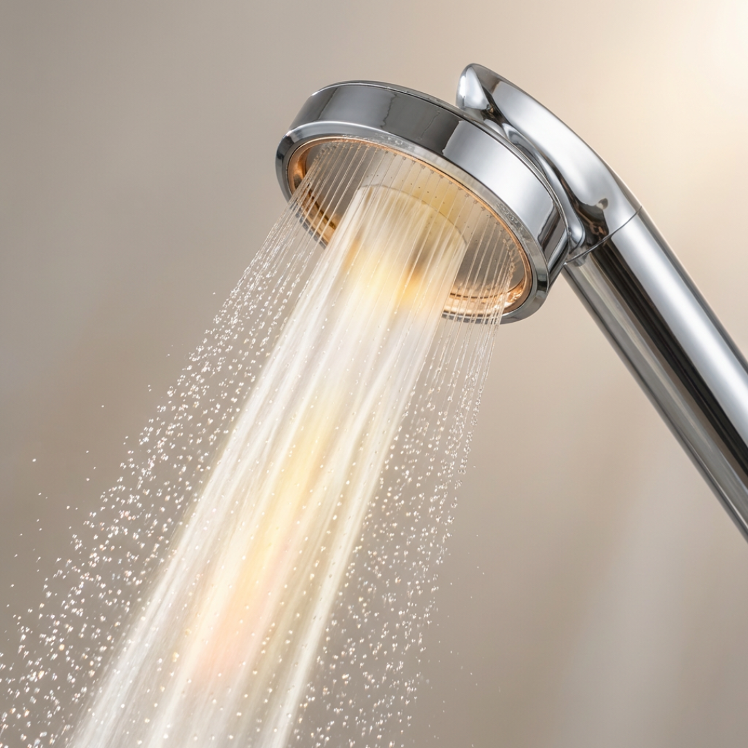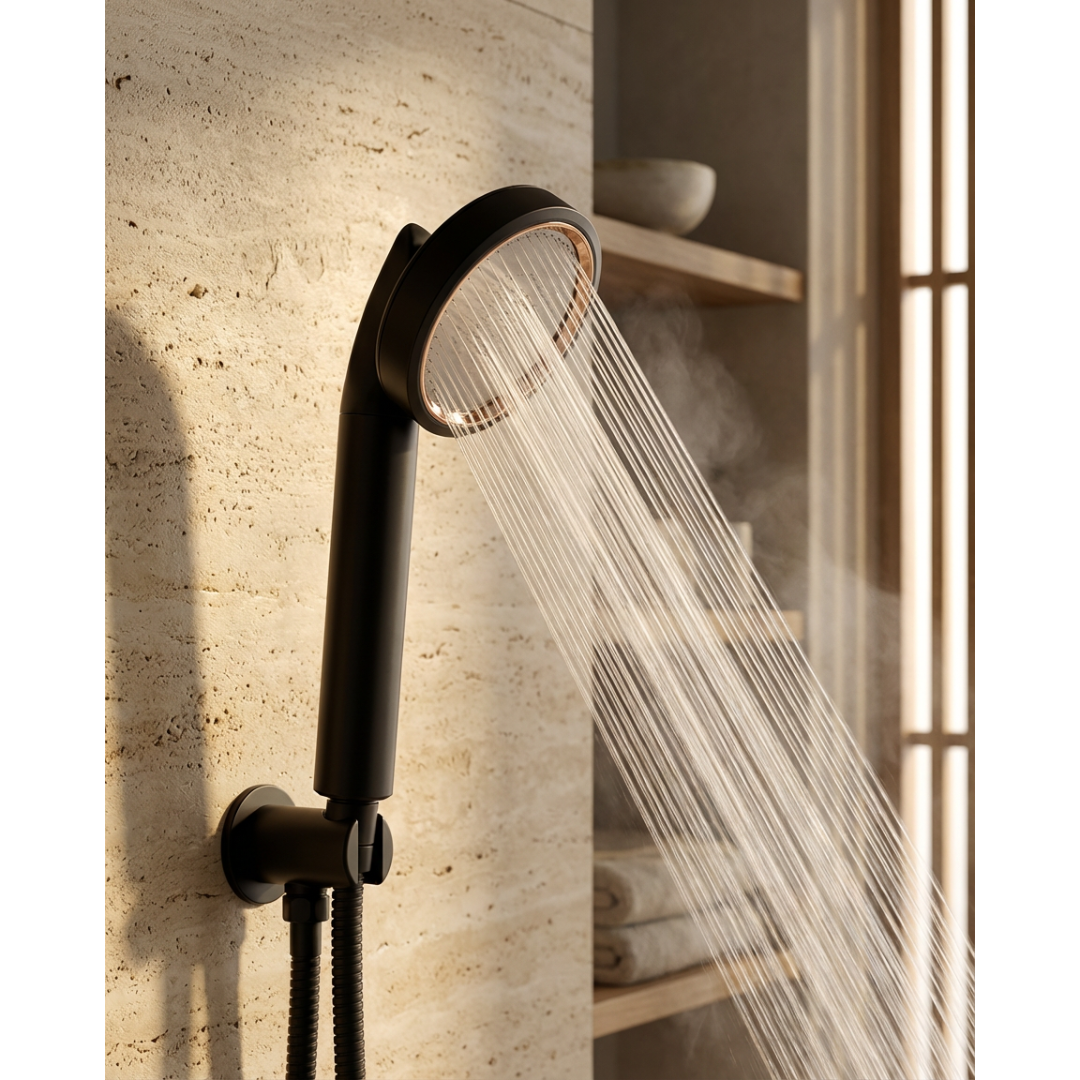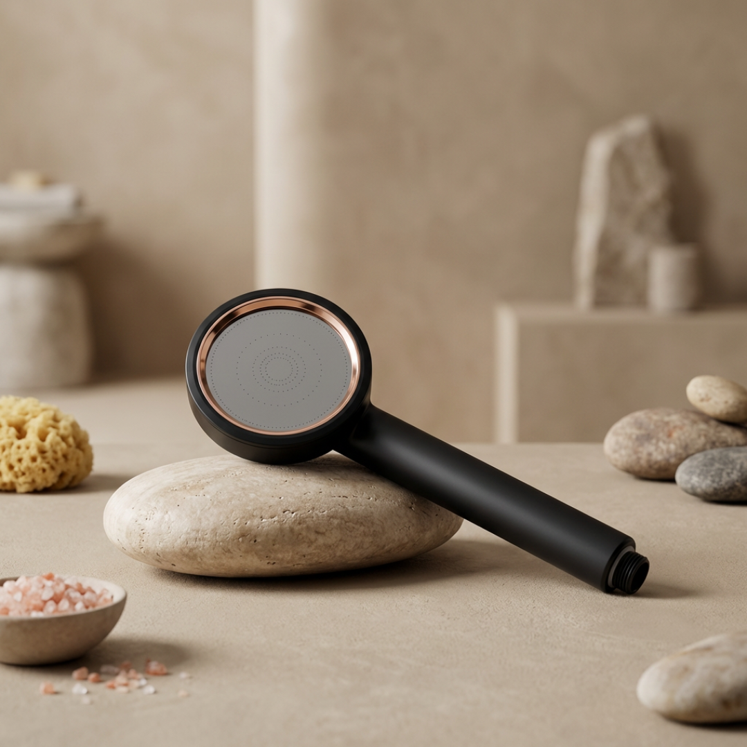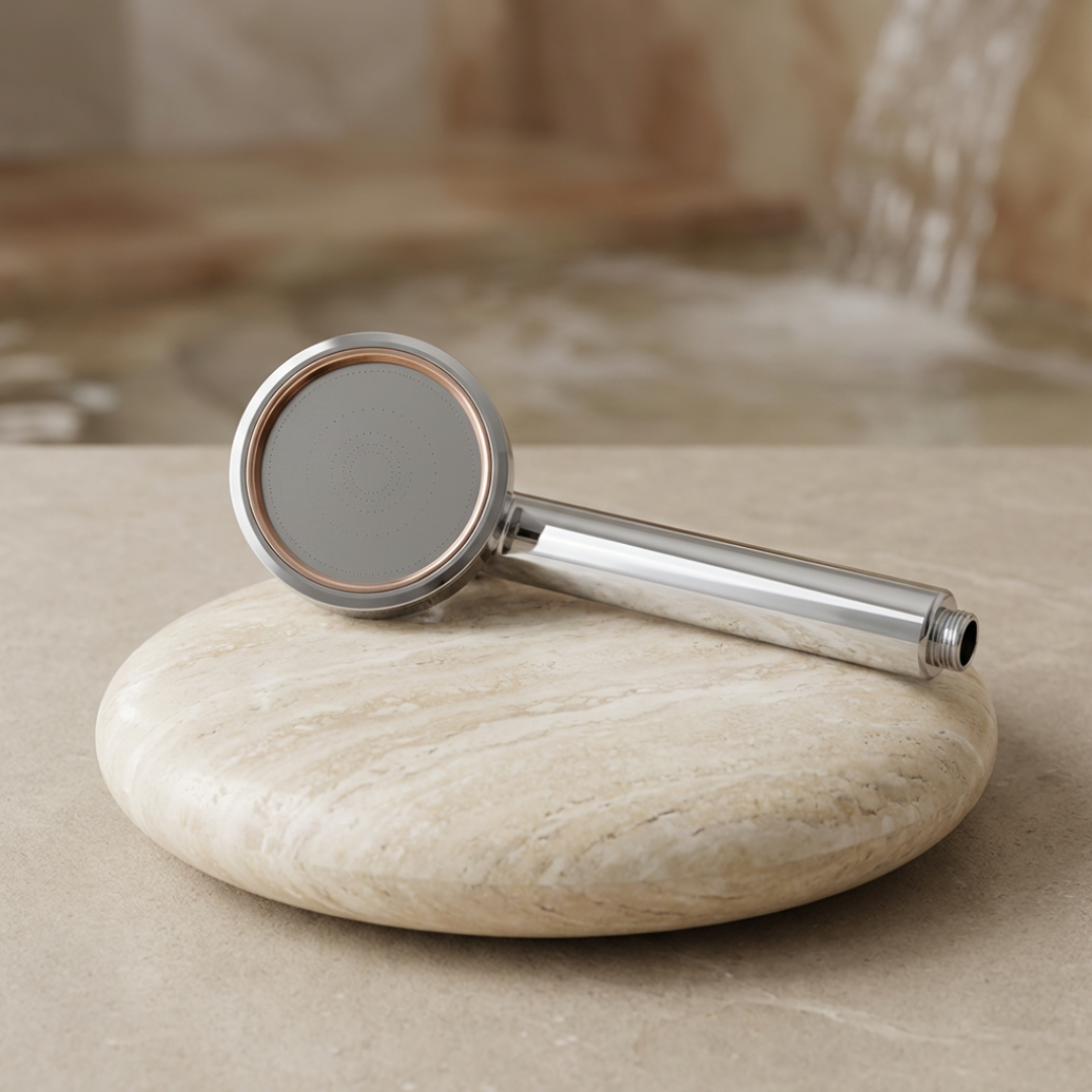 SUHAE uses Vitamin C infusion to help neutralise chlorine instantly as water flows through the system. This chemical reaction converts chlorine into less reactive compounds before the water touches your skin, making the shower feel gentler and more comfortable.